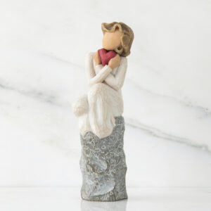 Willow Tree is an intimate line of figurative sculptures representing sentiments of love, closeness, healing, courage, hope…all the emotions we encounter in life. Artist Susan Lordi hand carves the original…