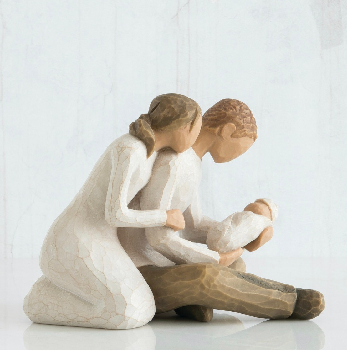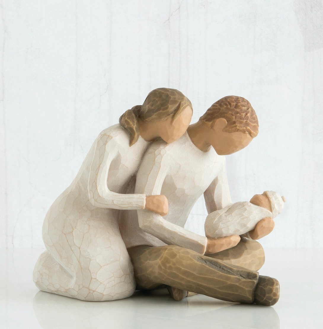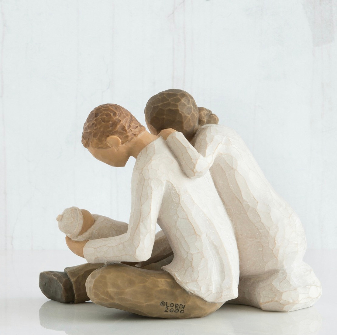 Willow Tree is an intimate line of figurative sculptures representing sentiments of love, closeness, healing, courage, hope…all the emotions we encounter in life. Artist Susan Lordi hand carves the original…