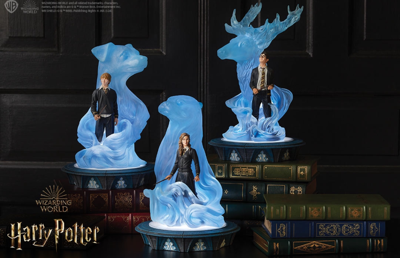 Show your love for Harry Potter with this exclusive Ron and Patronus figurine from the Wizarding World of Harry Potter. Shown standing with his patronus, Ron has the shape of a Jack Russell terrier. Stubborn and wilful as the Jack Russel can be, a dog Patronus is a definite sign of a loyal friend. According to the eighteenth-century Charms researcher Professor Catullus Spangle, the Patronus represents that which is hidden, uknown but necessary within the personality. Lights Up via USB. Comes in a branded giftbox.