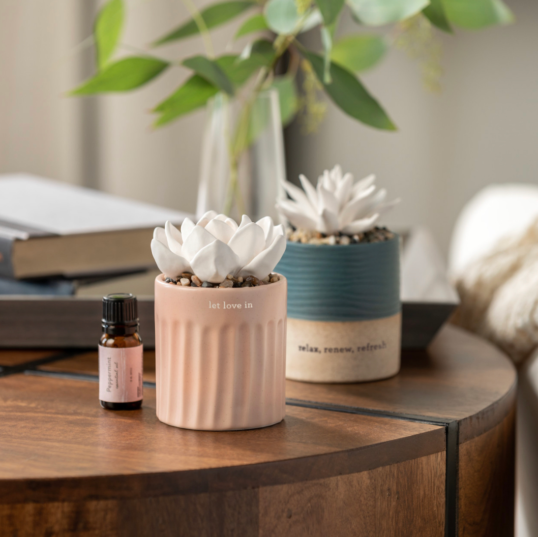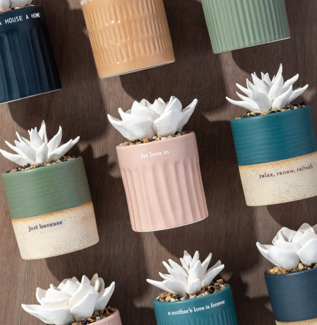 Our individual crafted succulent ceramic pots give the ability to create a quiet, peaceful orama anywhere. Place a few drops of your favourite scented oil into the white sculpted succulent top for slow, relaxing oil diffusion. ”A Mothers Love is Forever” will make any mother feel calm. The soft hue will suit any decor style and colour scheme so no need to worry. Oil diffusers work best centred in the room or near you. This is a great gift for any occasion, her birthday, Christmas or even mothers day. Each succulent comes inidivudally packaged in a currogated box.